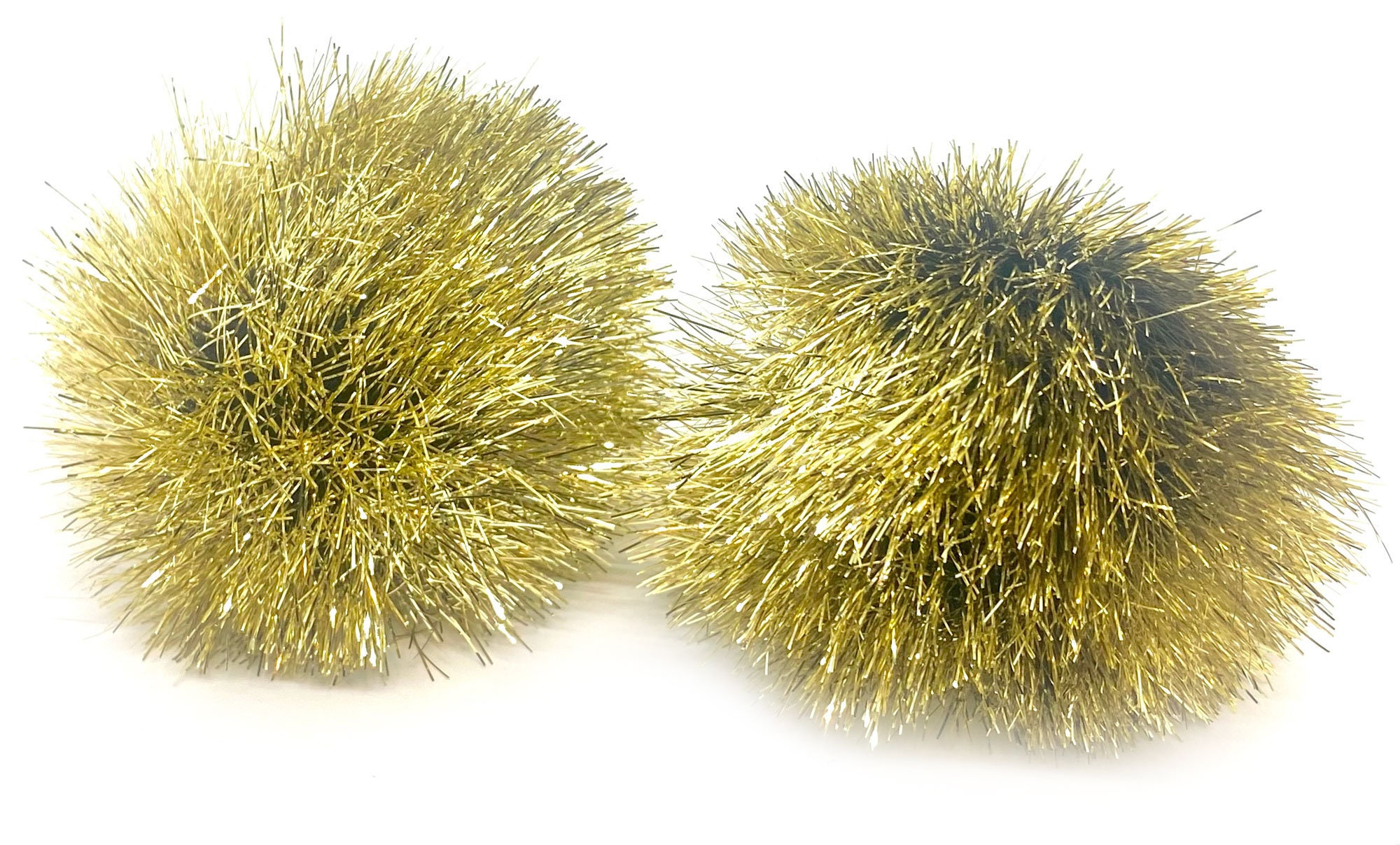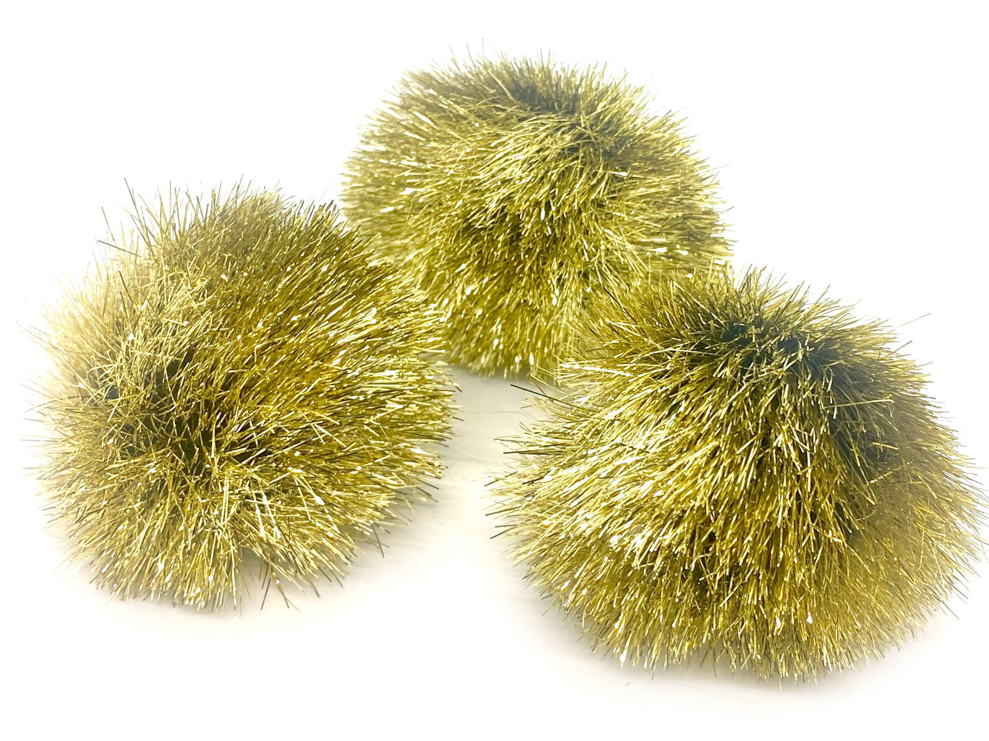 -3 Jumbo Gold Colored Tinsel Pom Poms