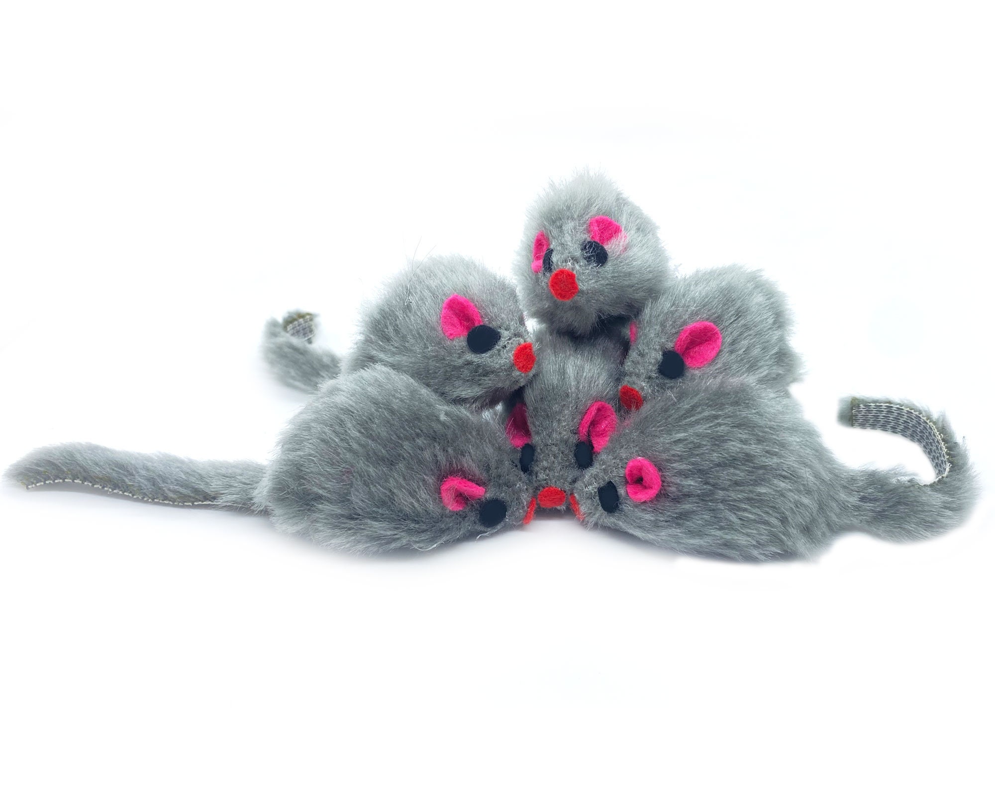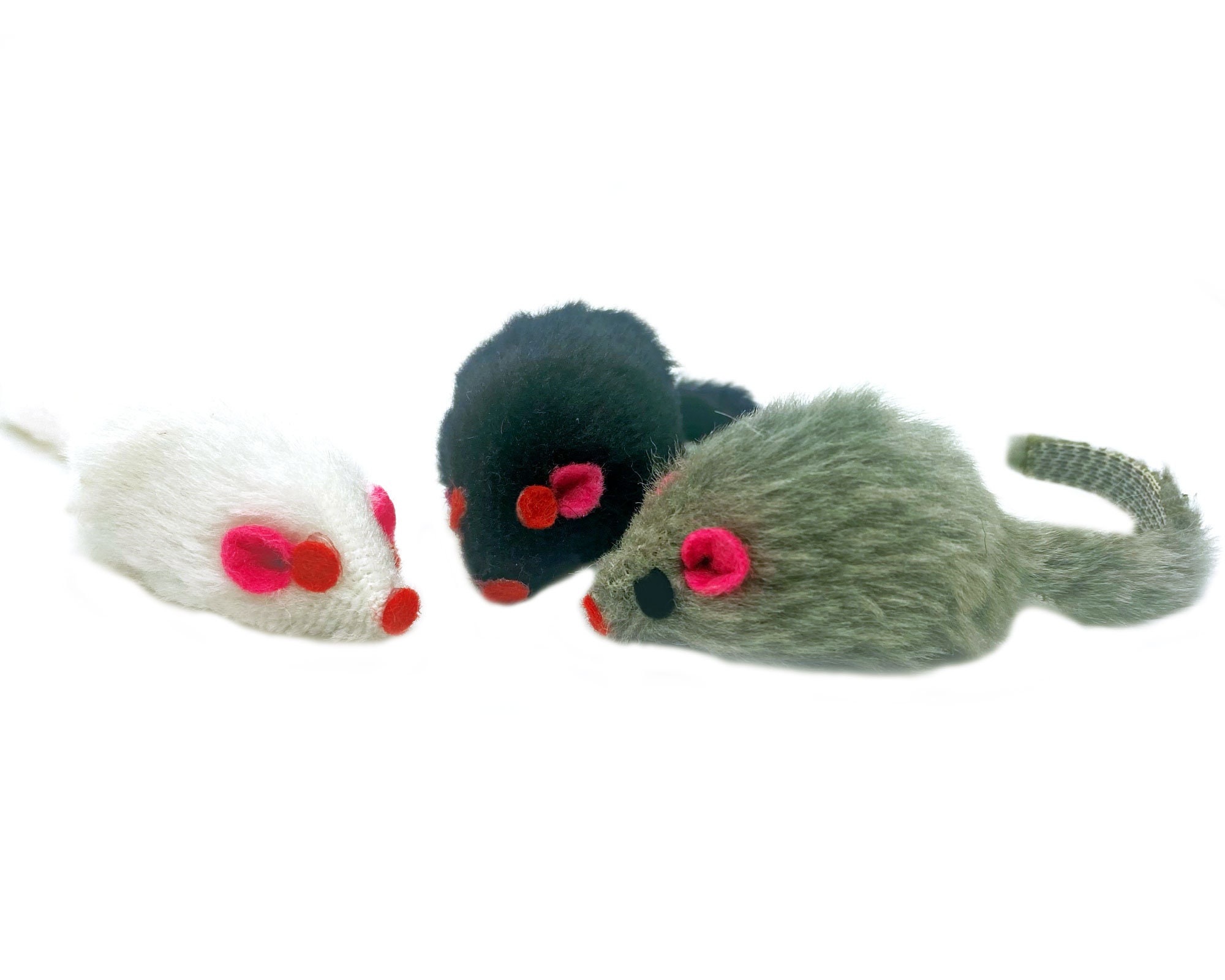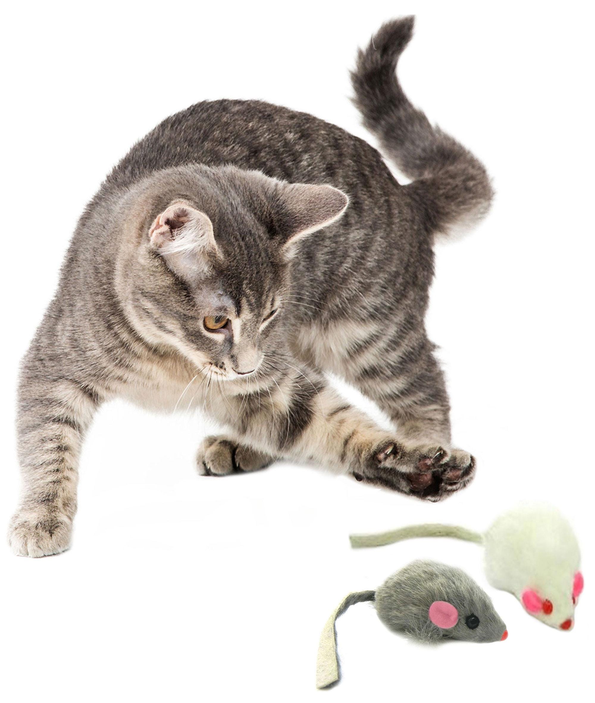Eco-Friendly cat toy mouse with all the features of our popular real rabbit fur mouse cat toy. Watch your cats and kittens go bunkers over these eco-friendly cat-mouse toys. Select from a 5-pack, 10-pack, or 12-pack of these fantastic fake fur mouse cat toys. Know that they are safe and eco-friendly mouse-cat toys.